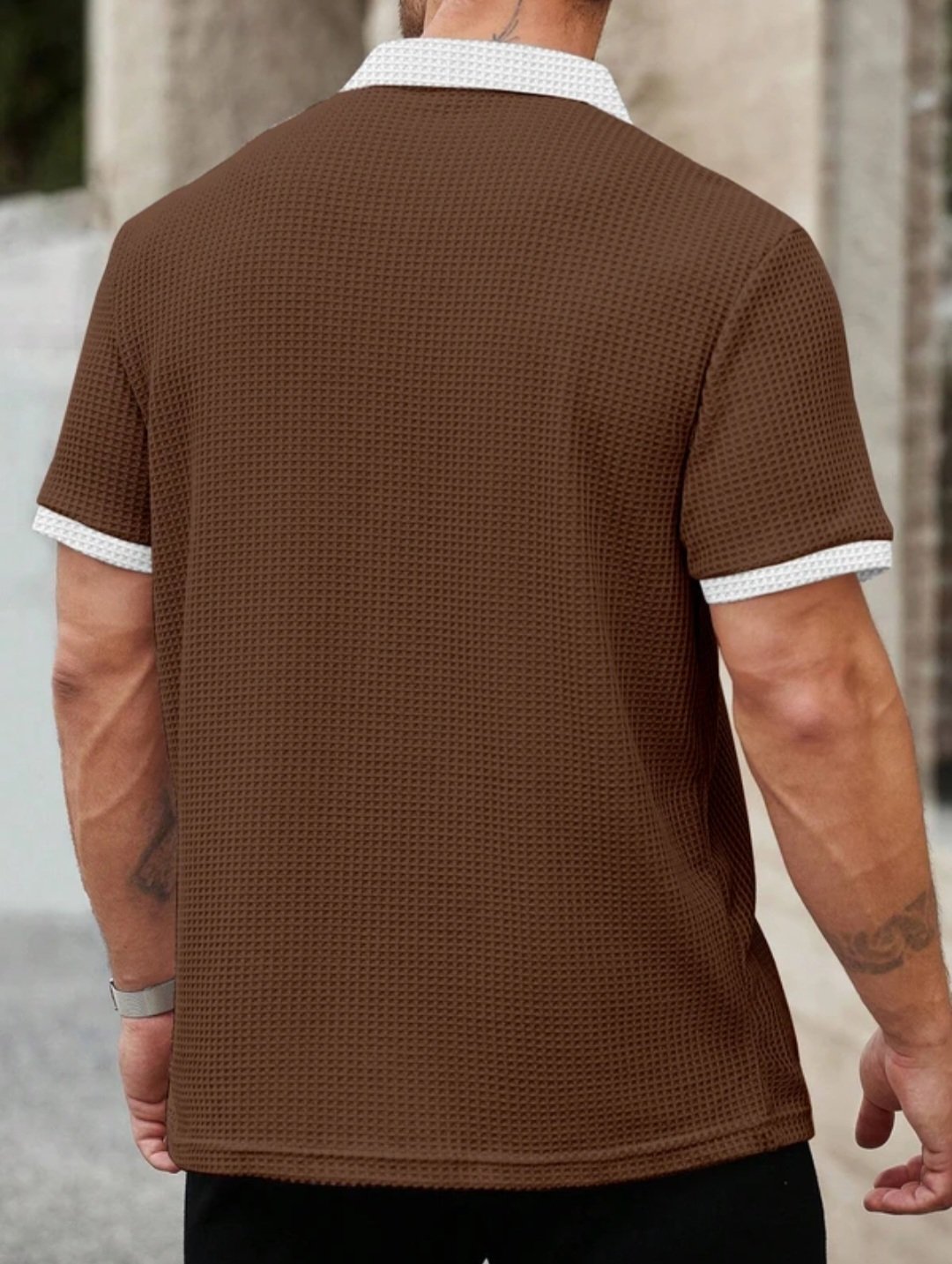 The classic checkered pattern adds visual interest and a trendy edge, while the zip-neck detail gives a modern twist to traditional tees