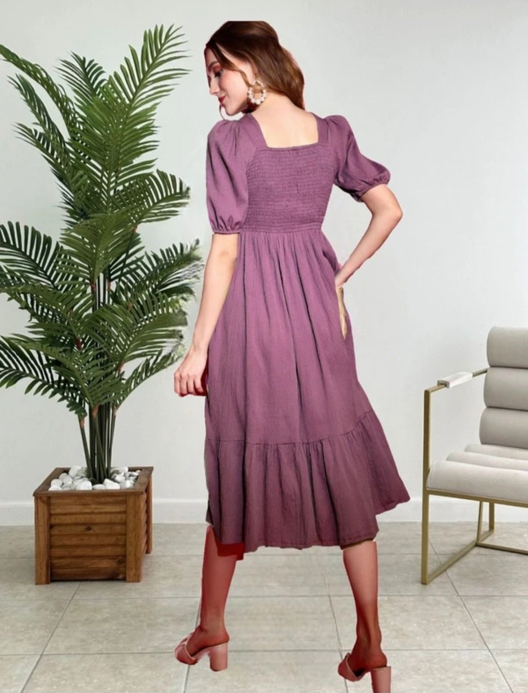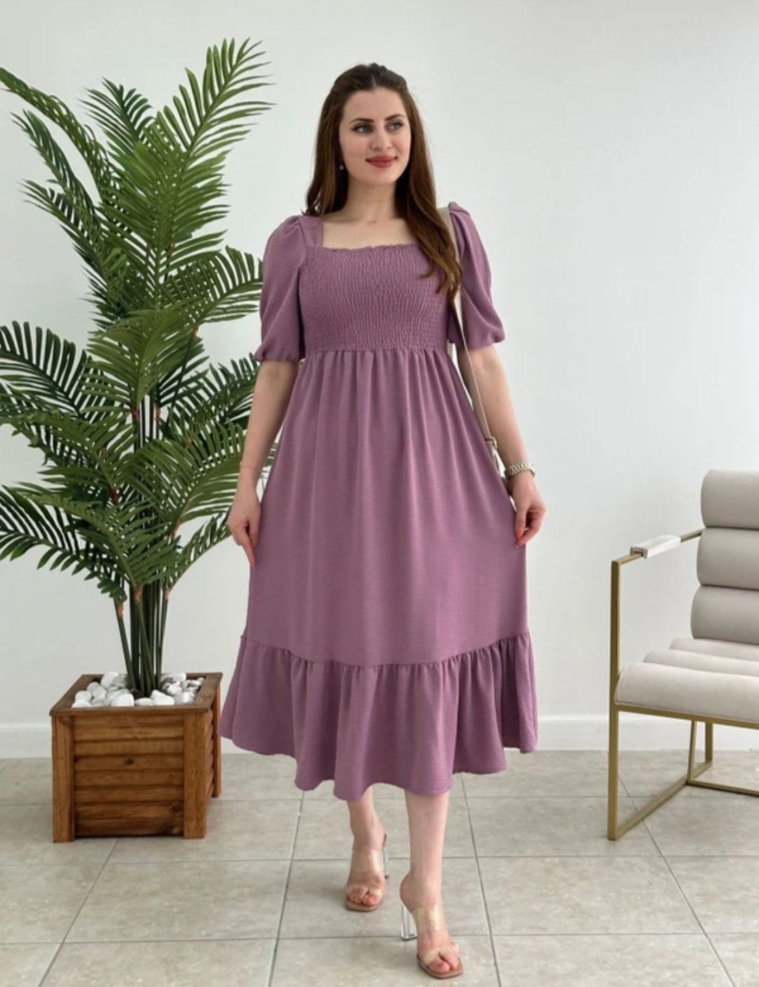 The fit-and-flare design highlights the waist and flows beautifully over the calves, making it perfect for both casual outings and special occasions.