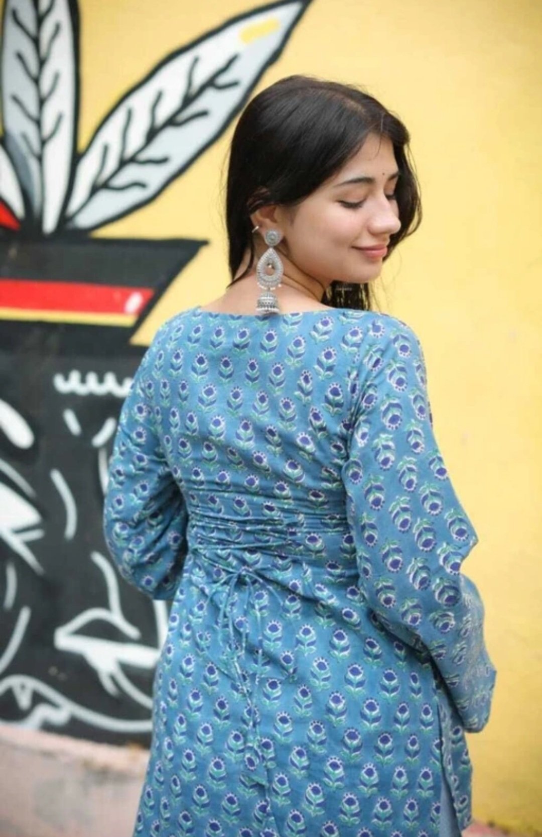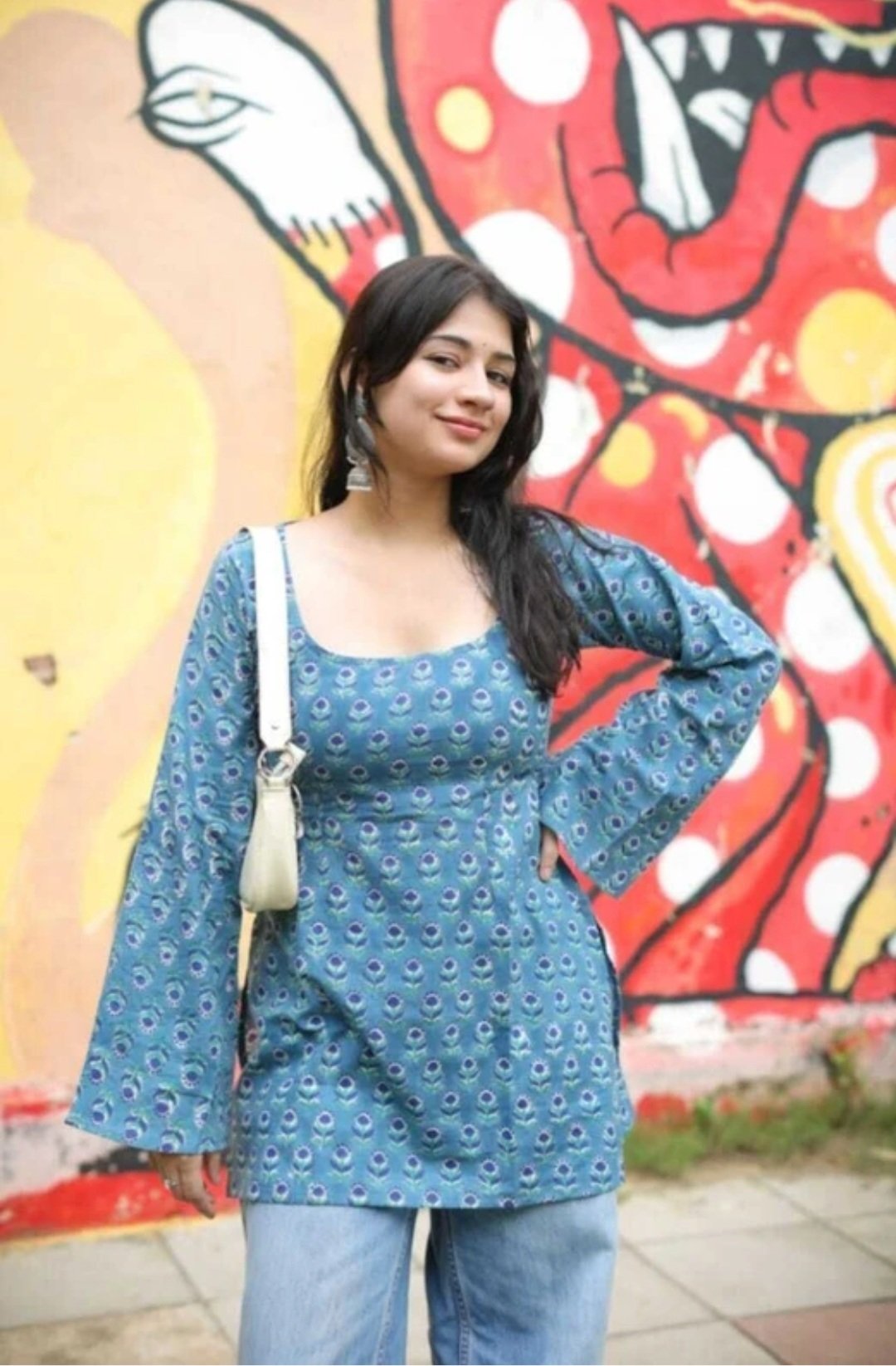 Women Floral Print Cotton Rayon Cape Top Kurta. Crafted from a soft and breathable cotton rayon fabric, this kurta offers all-day comfort with a graceful fall.