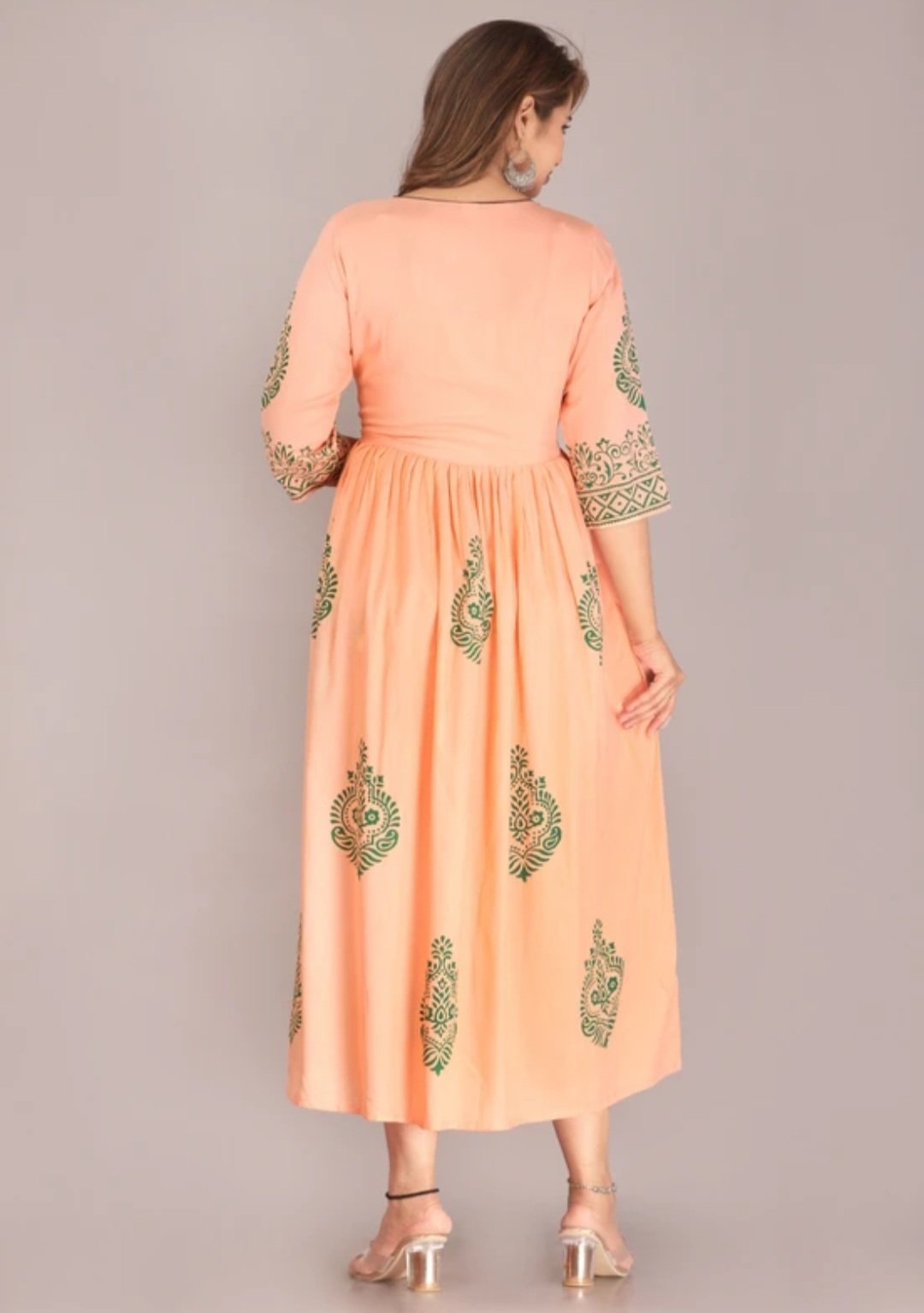 The kurti features a modest, flattering silhouette with fine detailing that enhances its overall appeal.