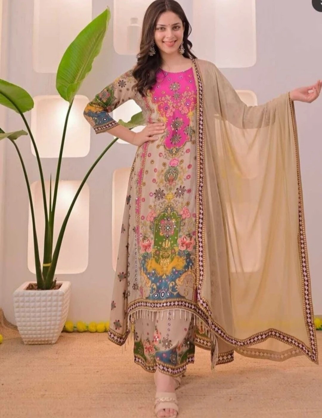Complete 3-piece set: Kurti, Palazzo & Dupatta