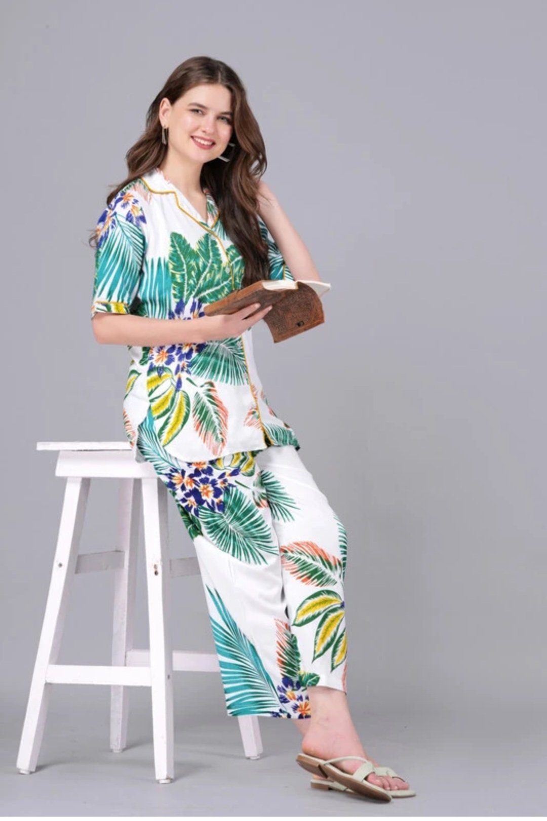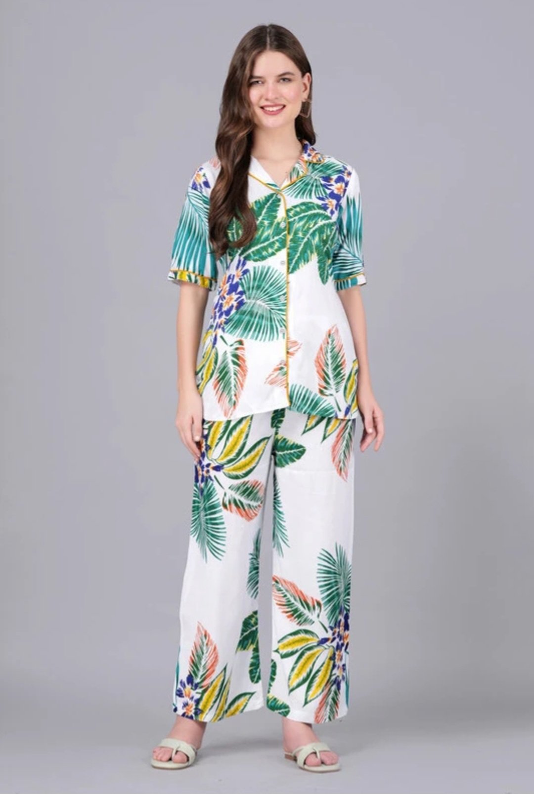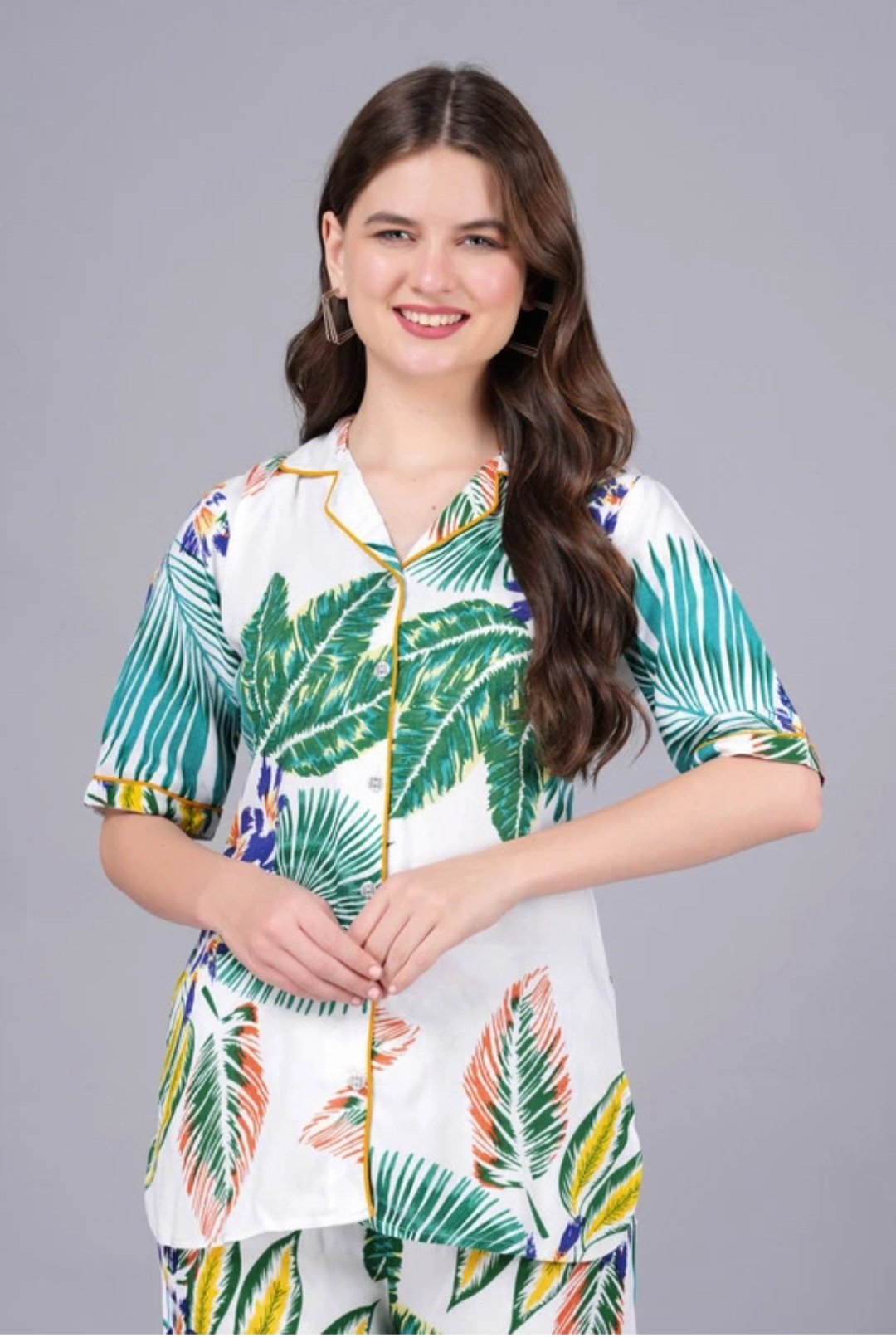 The white base beautifully complements the refreshing green prints, giving it a chic and soothing look.